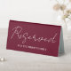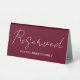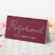 This burgundy red minimalist elegant script reserved sign can be personalised with your information in chic typography. Designed by Thisisnotme©