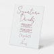 Burgundy Red Minimalist Script Signature Drinks Pedestal Sign