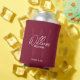 Burgundy Red Modern Script Personalised Groomsmen Can Cooler