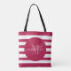 Burgundy Red Monogram Script Elegant Modern Stripe Tote Bag