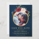 Burgundy Red Navy Floral Rustic Boho Photo Save The Date