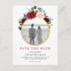 Watercolor Burgundy Red Navy Floral Rustic Boho Save the Date Photo post Card. Perfect for a fall wedding. The design features a stunning bouquet of burgundy / Marsala , peach , navy flowers / roses with matching leaves in gold ring shaped frame. Please find more matching designs and variations in my "blissweddingpaperie" store. And feel free to contact me for any custom requests.