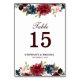 Burgundy Red Navy Floral Rustic Boho Table Number