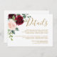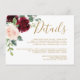 Burgundy Red Navy Floral Rustic Wedding Details Enclosure Card