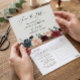 Burgundy Red Navy Floral Wedding Save the Date Postcard.