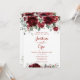 A burgundy red wedding invitation featuring a watercolor painted bouquet of deep red cascading peonies and silver eucalyptus greeneries.