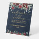 Burgundy Red Peony & Gold Fancy Font Calligraphy Pedestal Sign