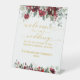 Burgundy Red Peony & Gold Fancy Font Calligraphy Pedestal Sign