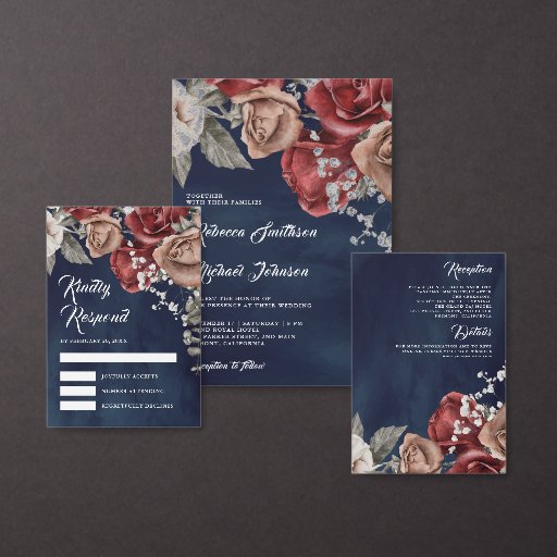 Burgundy Red Roses Navy Blue Wedding SuiteDesigned by Shabbir D