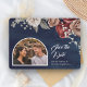 Burgundy Red Roses Floral Navy Blue Wedding Photo Save The Date
