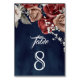 Burgundy Red Roses Floral Navy Blue Wedding Table Number