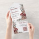 Burgundy Red Roses Floral QR Code Wedding All In One Invitation