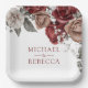 Elegant burgundy floral theme wedding paper plates featuring beautiful flowers.
