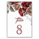 Burgundy Red Roses Floral Wedding Table Number
