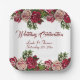 Burgundy Red Rustic Roses Floral Country Wedding Paper Plate