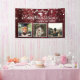 Large three photo collage graduation banner for all of the graduates' photos! Design features a modern white "Congratulations" calligraphy script design on a glittery burgundy red background. Personalise the custom text with the class year and name.