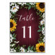 Burgundy Red Sunflower Greenery Wreath Wedding Table Number