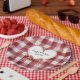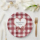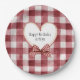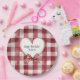 Burgundy Red White Heart Ribbon Birthday Paper Plate