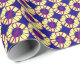 Burgundy Ribbon Flowers On Lemon Doughnuts Blue Wrapping Paper