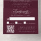 This burgundy and white all in one wedding invitation featuring elegant and romantic swirly calligraphy lettering with a RSVP and a QR Code. For more advanced customisation of this design, please click the BLUE DESIGN TOOL BUTTON above!