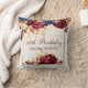 Burgundy Rosesand Navy Blue Dahlias garland bouquet woman's Birthday Gift / Party Gift Pillow Cushion. Accented with Dahlia Red. Customise the name and birthday of the one you wish to celebrate.