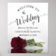 This simple sign is a wonderful way to welcome guests to your wedding celebration. It features a stunningly gorgeous design with elegant script calligraphy and a single long-stemmed burgundy, maroon, or wine-red coloured rose reflecting in a pool of water with waves and ripples. Wonderful way to welcome your guests to your special day.