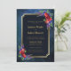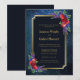 An elegant navy blue gold framed burgundy floral geometric wedding invitation which includes an RSVP response request at the bottom of the invitation. You can remove this if you are sending an RSVP response card with your invitation.