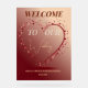 Welcome your guests with a touch of modern romance using this elegant Burgundy and Rose Gold Wedding Welcome Sign. Featuring a stylish gradient background, a shimmering heart-shaped confetti border, and sophisticated typography, this sign is the perfect first impression for your big day. The warm wine tones and rose gold accents make it an ideal choice for fall, winter, or glamorous evening weddings. All text, including names and dates, is fully customizable to fit your celebration.