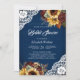 Burgundy Rose Sunflower Navy QR Code Bridal Shower Invitation