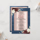 Burgundy Roses,Blue Wood Rose Gold 50th Birthday Invitation
