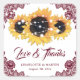 Burgundy rustic sunflower wedding favour stickers/envelope seals ideal for your burgundy rustic country, backyard, garden, or barn wedding party inspired by sunflower flowers. Matching items available to complement these burgundy rustic chic wedding stickers.