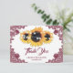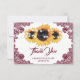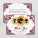 Burgundy Rustic Floral Lace Sunflower Wedding Thank You Card