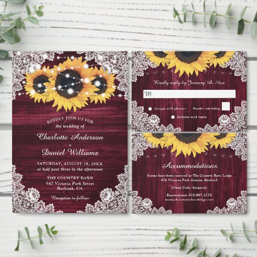 Burgundy Rustic Sunflower Wedding CollectionDesigned by Daniel Cap