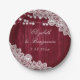 Burgundy Rustic Wood Lace String Lights Wedding Paper Plate