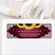 Personalised burgundy rustic sunflower wedding return address labels ideal for your rustic country, backyard, garden, or barn wedding party inspired by sunflower flowers. Matching items available.