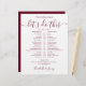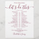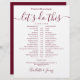 This stylish burgundy and white wedding schedule timeline can be personalised with your wedding details in chic burgundy lettering. Designed by Thisisnotme©