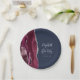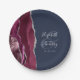Burgundy Silver Agate Navy Blue Wedding Paper Plate