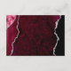 This elegant modern wedding reception enclosure card features a burgundy red watercolor agate background image trimmed with faux silver glitter. The title appears in handwriting script, with customizable text below in silver gray copperplate font. The reverse side features a matching burgundy and silver agate design.