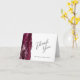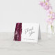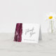 The left-hand edge of this elegant flat wedding thank-you card features a burgundy red watercolor agate design trimmed with silver faux glitter. The text is in charcoal script and sans serif fonts on a white background.