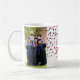 Customisable photo template class of 2025 graduation mug with burgundy and silver confetti pattern.