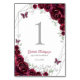 Burgundy silver and white Quinceanera celebration table number cards. Features, script font, silver butterflies, watercolor roses and tiara. Perfect for an elegant princess style glam celebration. Personalize with your own details. Printed Zazzle invitations or instant download digital printable template.