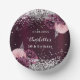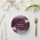 Burgundy background decorated with burgundy and blush pink florals, flowers, and faux silver glitter, sparkles. Personalise and your name and the date.
