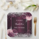 Burgundy silver florals birthday paper plate
