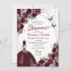 Burgundy & Silver Glitter Butterfly Princess Quinceanera Birthday Invitation