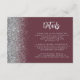 The left-hand edge of this elegant modern wedding details enclosure card features a silver faux glitter design. The customisable text combines pale silver grey handwriting and sans serif fonts on a dark burgundy red background. The reverse side features a matching burgundy and silver glitter design.