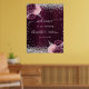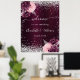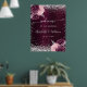 A dark gradient burgundy background. Decorated with faux silver sparkles and burgundy and pink flowers, roses.