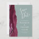 This elegant modern save the date card features a burgundy watercolor agate geode border trimmed with faux silver glitter. The white text appears on a sage green background. Easily replace the sample image on the reverse side with a vertical photo of the future bride and groom.