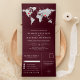 Burgundy Silver World Map All in One Wedding Tri-Fold Invitation