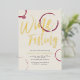 Gold foil wine tasting party invitation in off-white with burgundy wine glass stains and a stylish brush script.