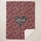 Burgundy Stripes Black Faux Lace Floral Heart Sherpa Blanket